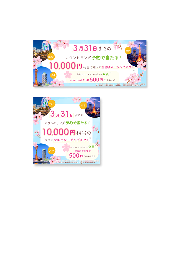 バナー作成 2025年8月13日 最終更新日時 : 2025年8月13日 yokohase 【製作時間】3時間/1枚【使用ソフト】Photoshop・illustrator【担当業務】デザイン【意識した亊】春らしい季節感が伝わるデザインにしました。