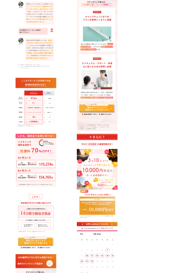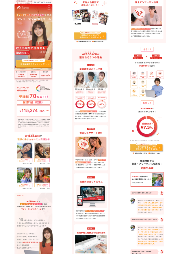 ランディングページ制作 2025年8月13日 最終更新日時 : 2025年8月13日 yokohase 【製作時間】20時間【使用ソフト】Photoshop・illustrator・Figma・HTML・CSS・jquery【担当業務】デザイン・実装【意識した亊】スクロール離脱を防ぐためjqueryで動きをつけたLPを作成しました。